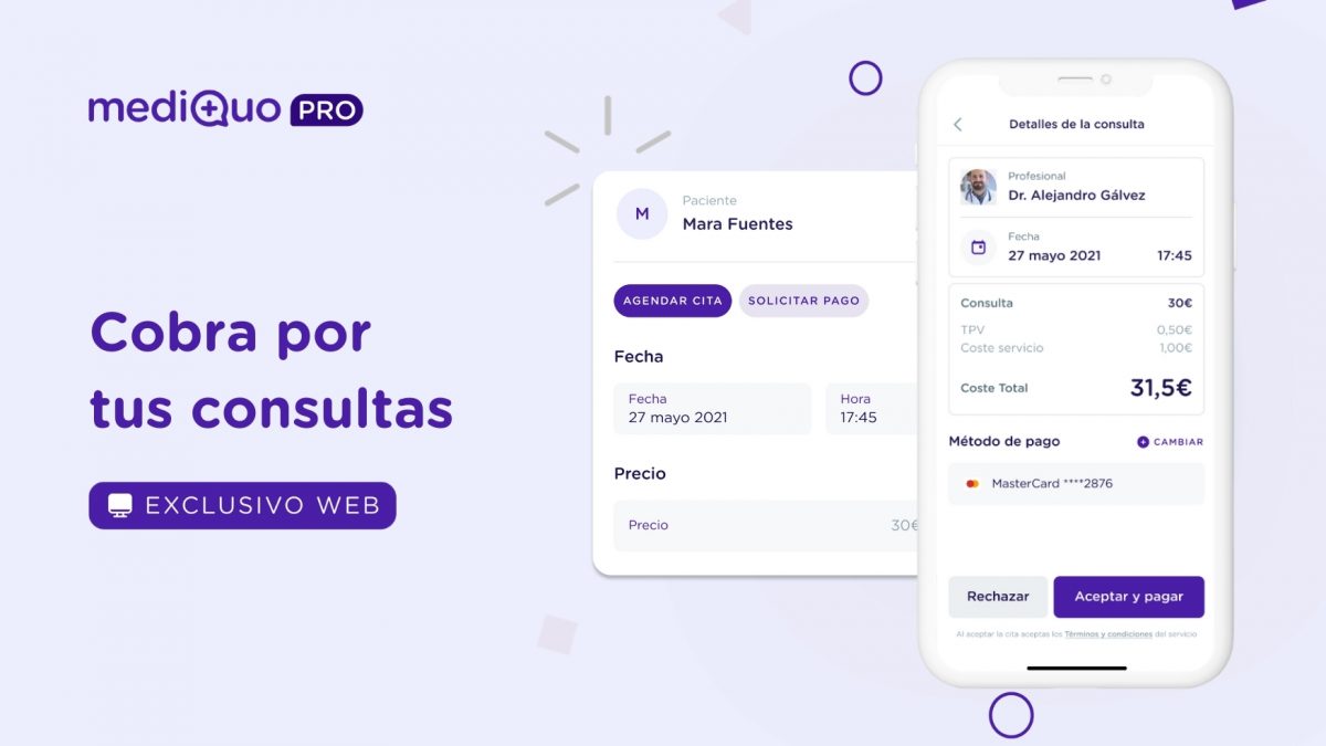 A partir de hoy, todos los profesionales de la salud de España podrán empezar a usar la nueva funcionalidad que hemos incorporado a mediQuo PRO. La pasarela de pagos ya está disponible tanto en web como en la app de mediQuo PRO. Permite a tus pacientes que accedan a tu consulta online mediante una solicitud de pago, estén donde estén. Olvídate de tener que hacer estos trámites mediante el uso de varias apps. Los pagos en línea de mediQuo PRO son totalmente privados, tus pacientes nunca accederán a tu número de teléfono ni a tus datos bancarios.
